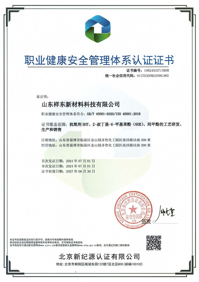 山東祥東新材料科技有限公司年產(chǎn)8.7萬噸抗氧化劑、烷基酚及粗酚精制項(xiàng)目(一期)(一期裝置)竣工環(huán)境保護(hù)驗(yàn)收監(jiān)測(cè)報(bào)告